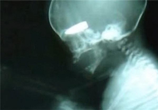 این تصویر متعلق به تصویر سونوگرافی یکی از زنان حامله سوری بود که اخیرا به دست تروریستهای سوری از ناحیه شکم هدف اصابت گلوله قرار گرفته است، گلوله به سر جنین اصابت کرده و در عکس سونوگرافی کاملا مشهود است.