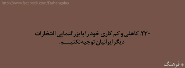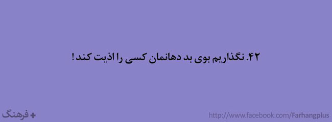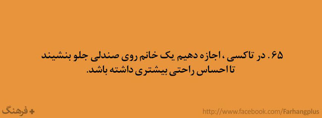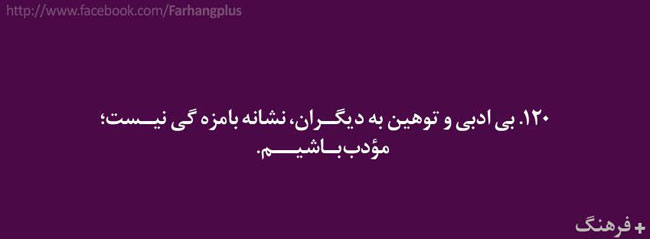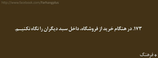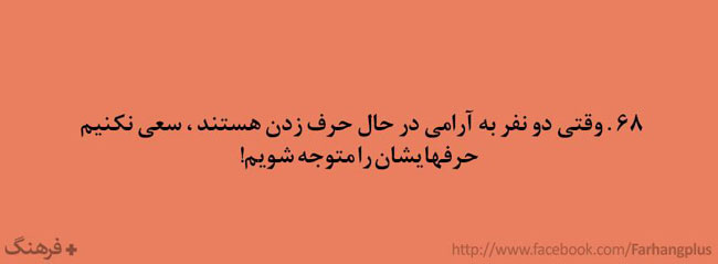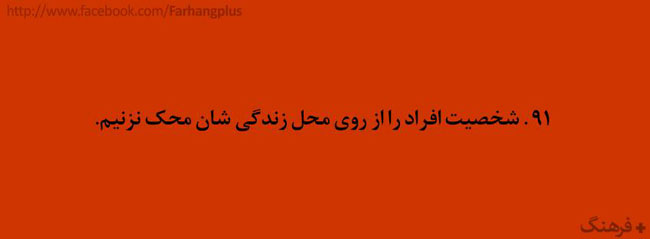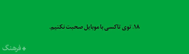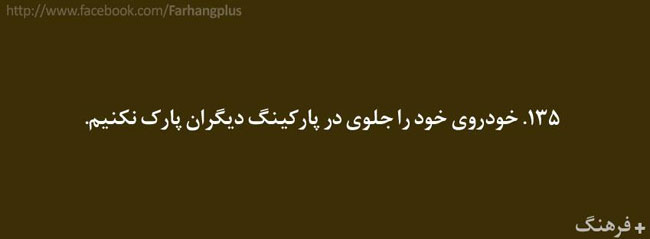 این همه را گفتم تا مقدمه ای باشد برای ادامه ی مطالب . در ادامه گلچینی از هزاران کاری که باید آدمهای با فرهنگ انجام دهند ( و شاید بعضی کارها که آدمهای با فرهنگ نباید انجام دهند ) آورده شده است . شاید مقایسه ی رفتار خودمان با این لیست بسیار خلاصه شده ، گوشی را دستمان بدهد که آیا واقعا با فرهنگیم یا فقط فرهنگدوست !